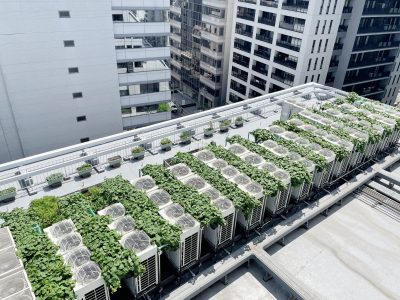 ビル壁面などへの植栽とあわせて、屋上菜園でのアーバンファーミングや収穫物の商品化を通じ、都市における人とみどりの共生を形にします。